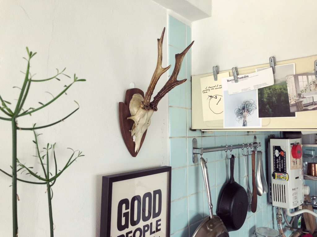 レンジフードの上に置いた角も何気に良い仕事してます。