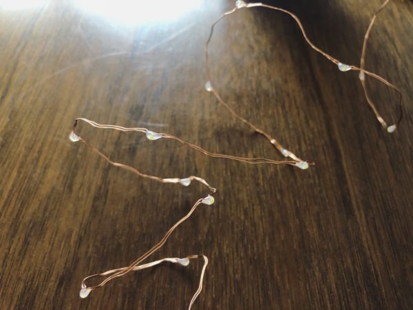 流木に巻くことで、ただのディスプレイアイテムではなくて照明器具としての機能を持たせてみようというわけです。