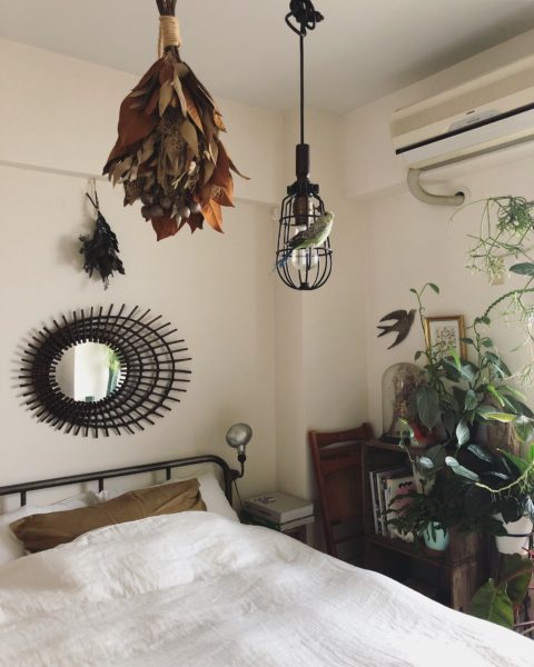 リビングに吊るしたり、壁にかけたりしてきましたが、最近はベッドルームに落ち着いてます。