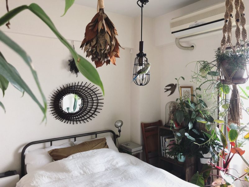 リビングに吊るしたり、壁にかけたりしてきましたが、最近はベッドルームに落ち着いてます。