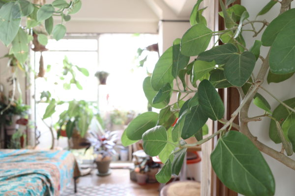 よく植物をたくさん育ててる部屋のことを『ジャングルみたい』って言いますが、これってあながち比喩じゃないんですよ。ほんとうにかき分けてますからね(笑)。