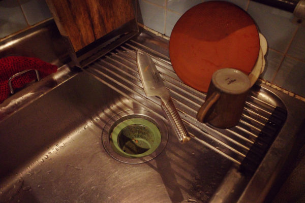 ぼくがキッチンツールを引き出しや戸棚にしまわないで、いわゆる『見せる収納』にしてるのは、この『夜に照明を反射してくれるから』という理由も大きいですね。